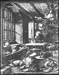 nach rechts ins Leere schreibt und von oben nach unten die Zeilen zieht. |